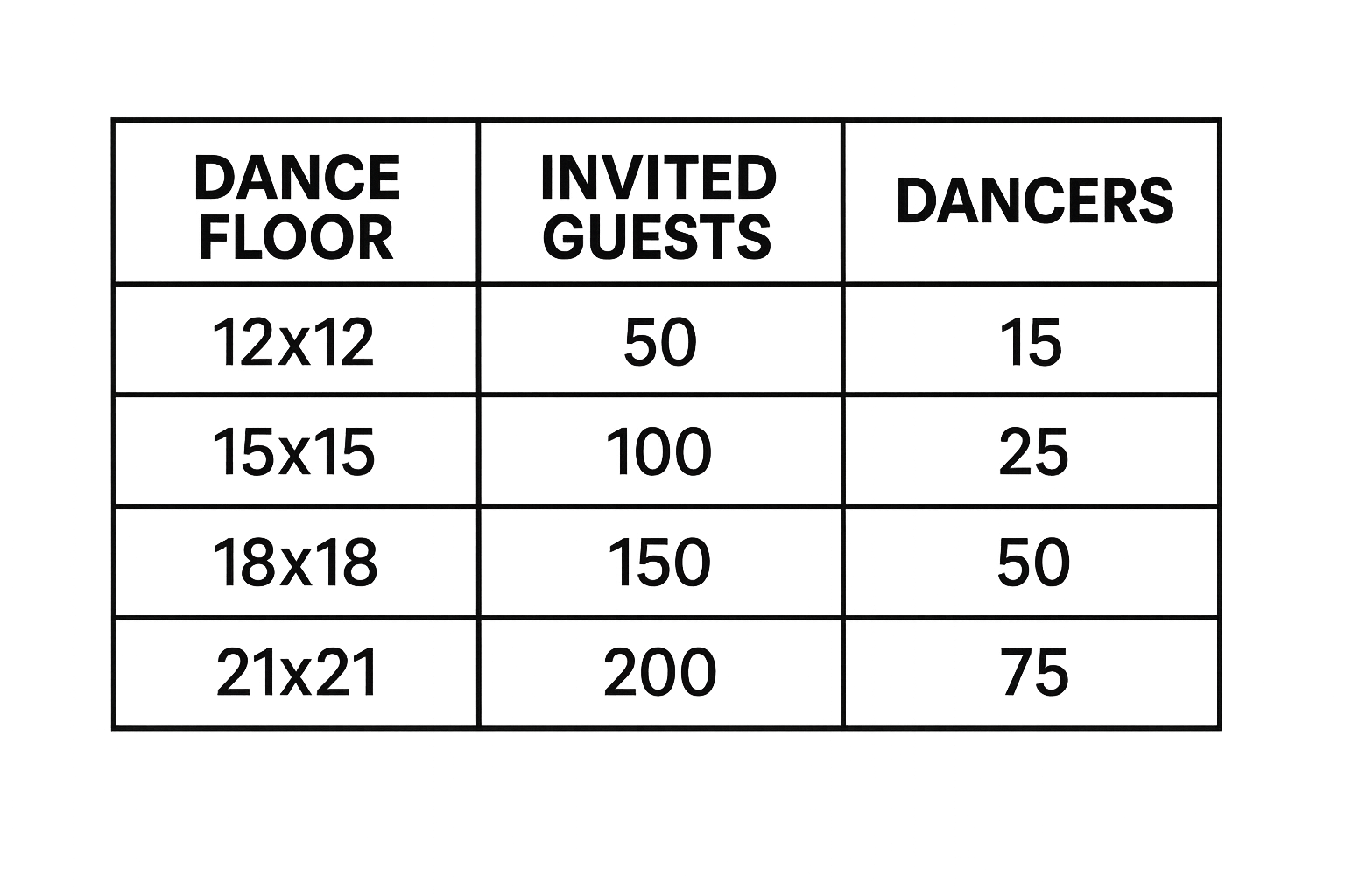 Dance Floor Size Chart